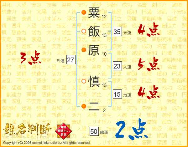 粟飯原慎二さんの人運は23画の5点!