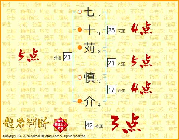 七(7画)十(10画)苅(8画) 慎(13画)介(4画)