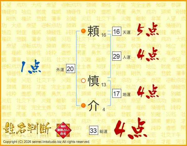 頼慎介さんの総運は33画の4点!