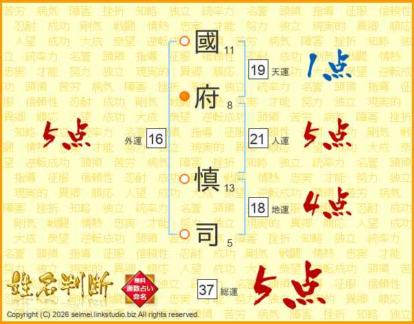 國府慎司さんの人運は21画の5点!