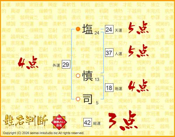 塩(24画) 慎(13画)司(5画)