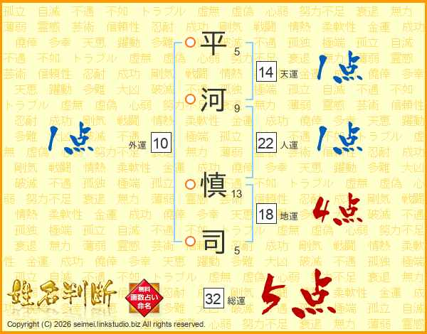 平河慎司さんの総運は32画の5点!