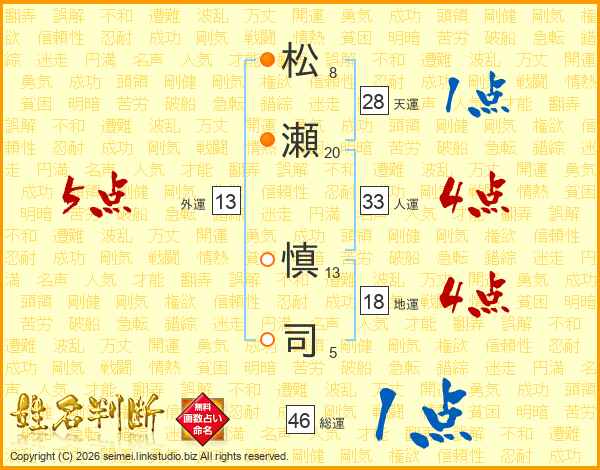 松(8画)瀬(20画) 慎(13画)司(5画)