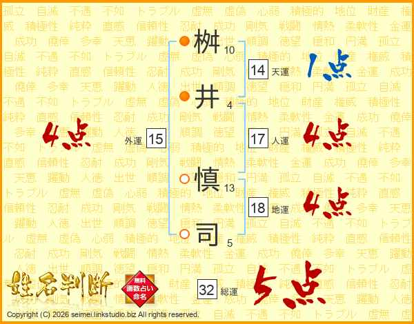 桝井慎司さんの総運は32画の5点!