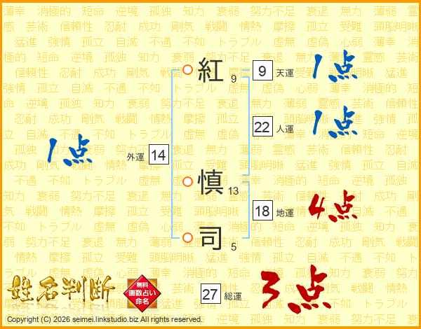 紅(9画) 慎(13画)司(5画)