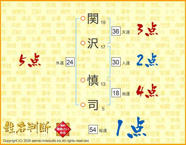 関沢慎司さんの総運は54画の1点!