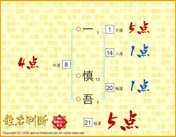 一慎吾さんの総運は21画の5点!