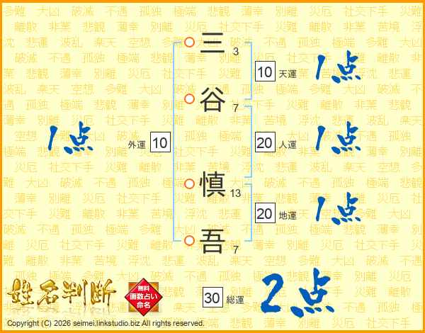 三(3画)谷(7画) 慎(13画)吾(7画)