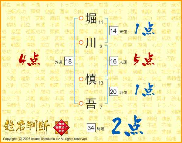 堀川慎吾さんの総運は34画の2点!