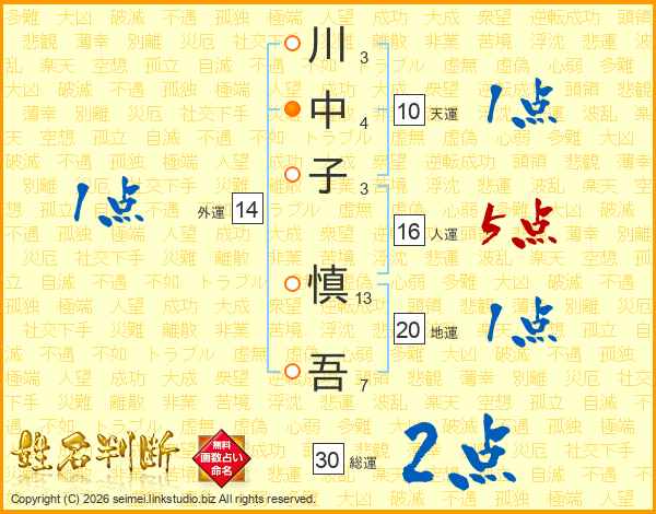 川中子慎吾さんの総運は30画の2点!
