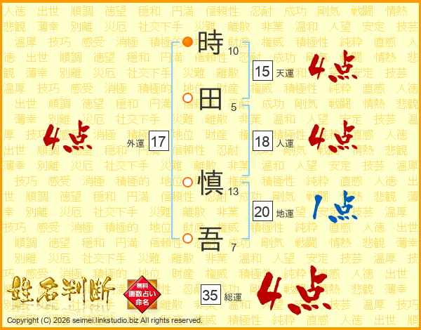 時田慎吾さんの総運は35画の4点!