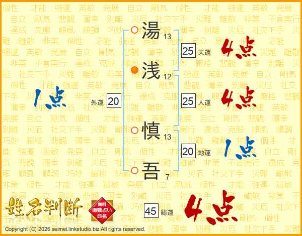 湯浅慎吾さんの総運は45画の4点!