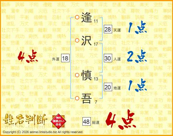 逢沢慎吾さんの外運は18画の4点!