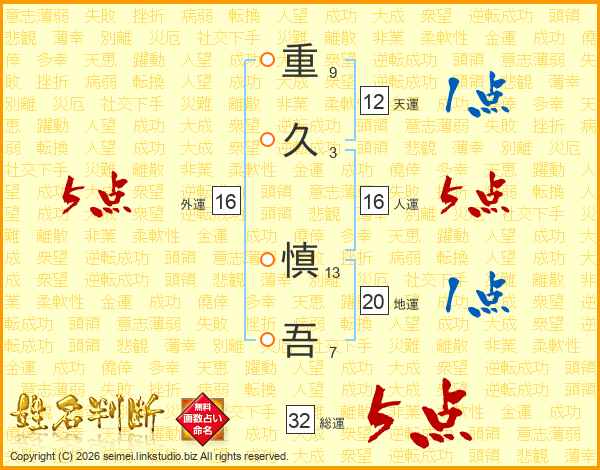 重久慎吾さんの総運は32画の5点!