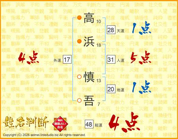 高浜慎吾さんの総運は48画の4点!