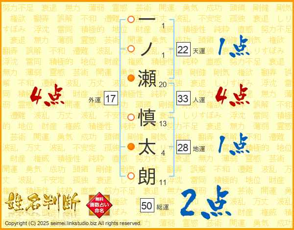 一ノ瀬慎太朗さんの人運は33画の4点!