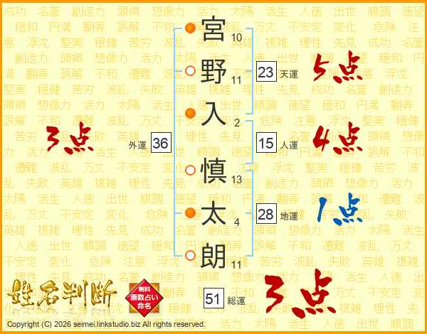 宮野入慎太朗さんの天運は23画の5点!