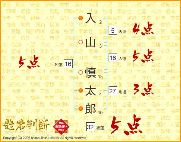 入山慎太郎さんの総運は32画の5点!