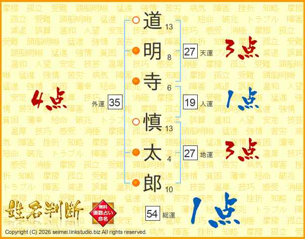 道明寺慎太郎さんの総運は54画の1点!