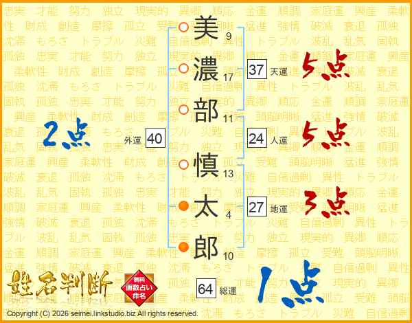 美濃部慎太郎さんの総運は64画の1点!