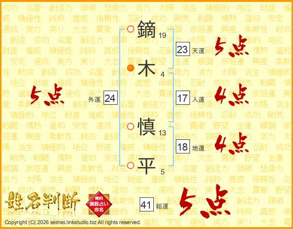 鏑木慎平さんの総運は41画の5点!