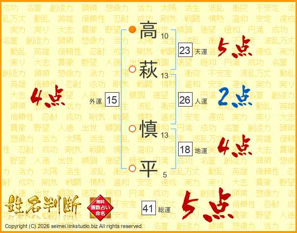 高萩慎平さんの天運は23画の5点!