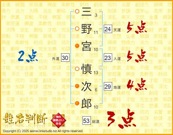 三野宮慎次郎さんの総運は53画の3点!
