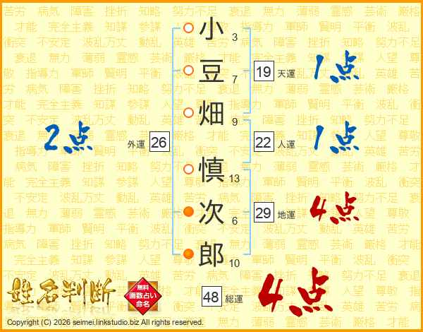 小豆畑慎次郎さんの総運は48画の4点!