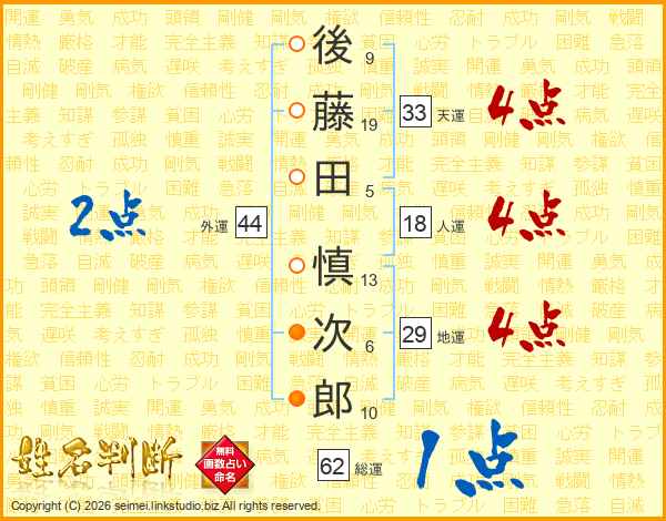 後(9画)藤(19画)田(5画) 慎(13画)次(6画)郎(10画)