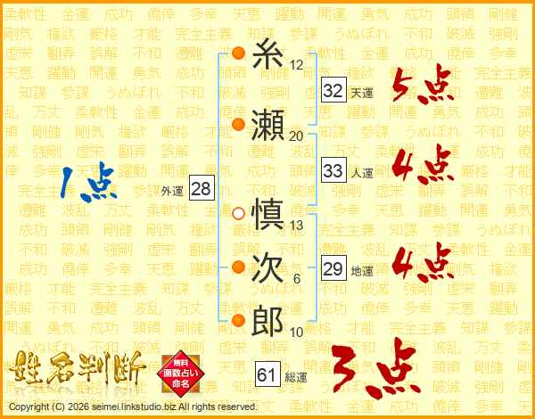 糸瀬慎次郎さんの天運は32画の5点!