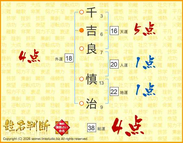 千吉良慎治さんの総運は38画の4点!