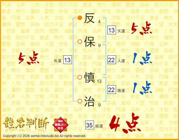 反保慎治さんの総運は35画の4点!