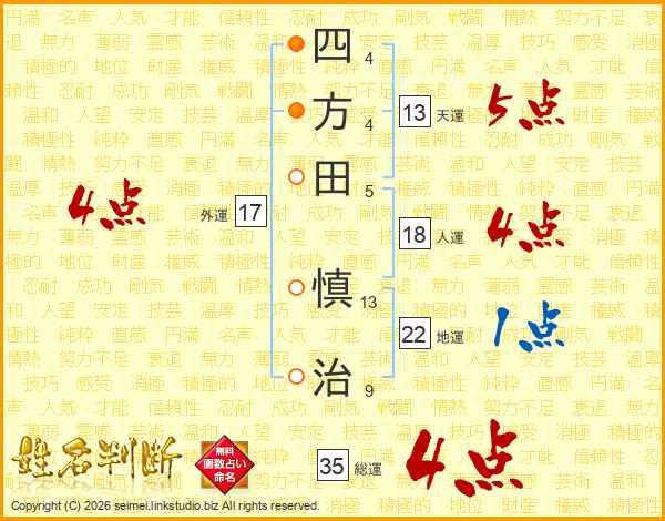 四(4画)方(4画)田(5画) 慎(13画)治(9画)