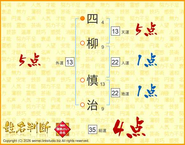 四柳慎治さんの総運は35画の4点!