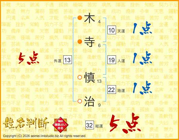 木寺慎治さんの総運は32画の5点!