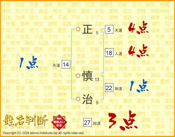 正慎治さんの総運は27画の3点!