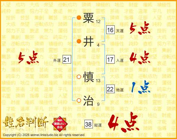 粟(12画)井(4画) 慎(13画)治(9画)