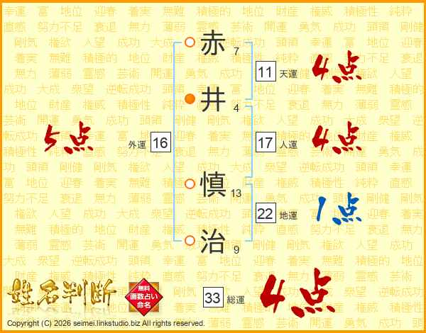 赤井慎治さんの総運は33画の4点!
