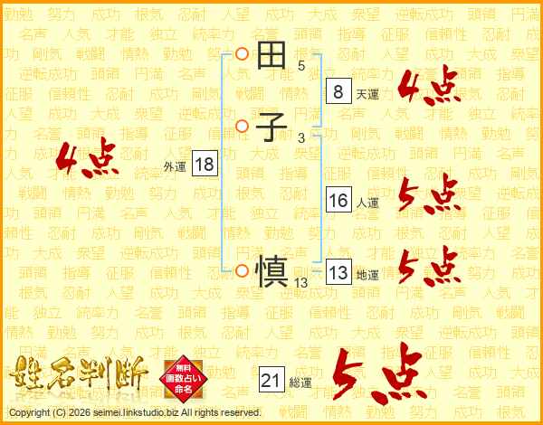 田子慎さんの総運は21画の5点!