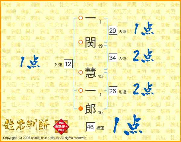 一関慧一郎さんの総運は46画の1点!