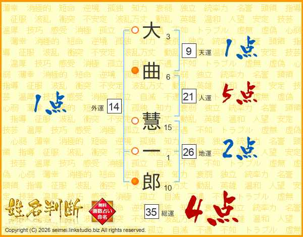 大曲慧一郎さんの地運は26画の2点!