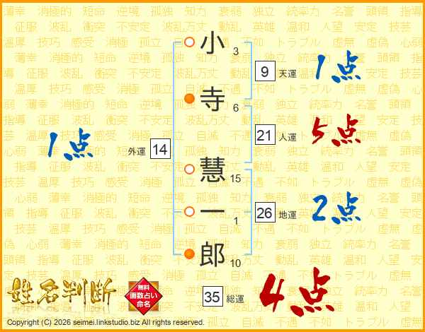 小(3画)寺(6画) 慧(15画)一(1画)郎(10画)