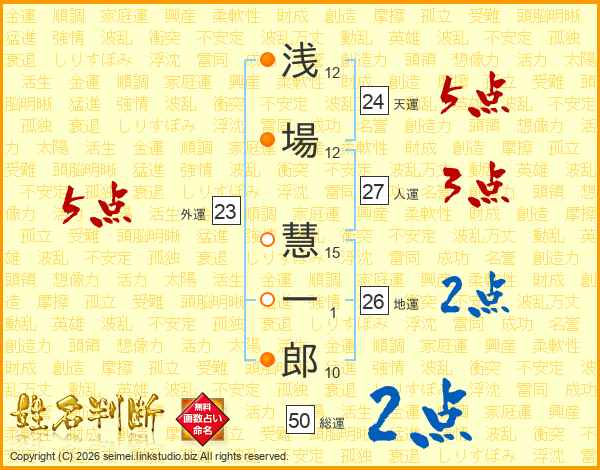 浅(12画)場(12画) 慧(15画)一(1画)郎(10画)