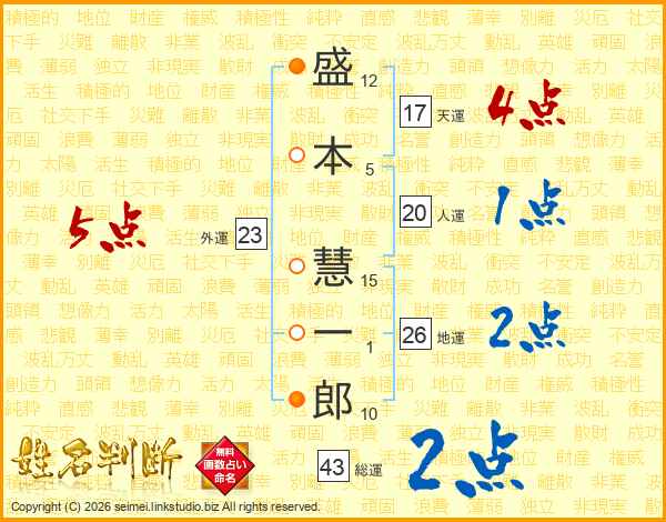 盛本慧一郎さんの地運は26画の2点!