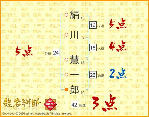 絹川慧一郎さんの地運は26画の2点!