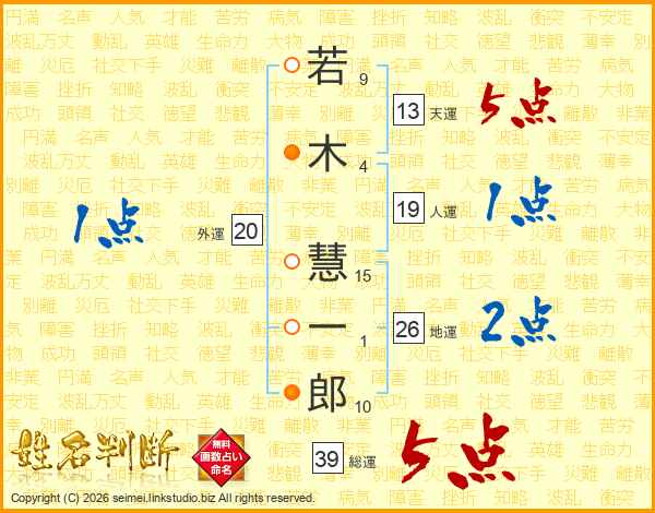 若木慧一郎さんの総運は39画の5点!
