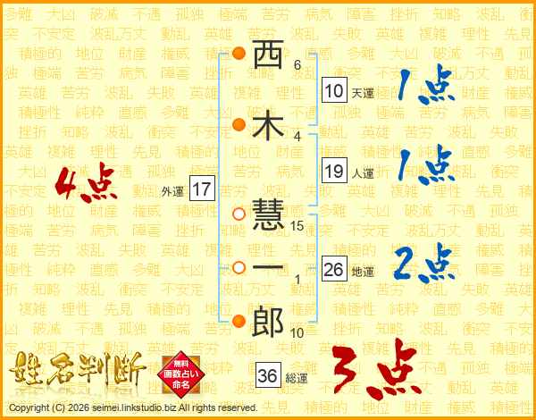 西木慧一郎さんの地運は26画の2点!