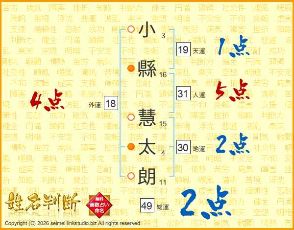 小(3画)縣(16画) 慧(15画)太(4画)朗(11画)