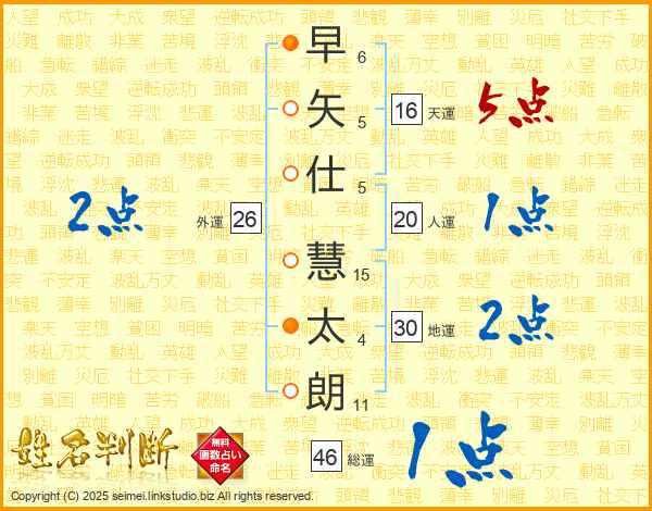早矢仕慧太朗さんの総運は46画の1点!