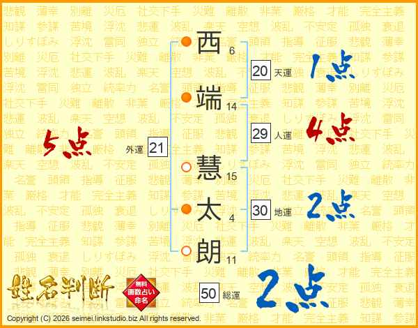 西端慧太朗さんの人運は29画の4点!